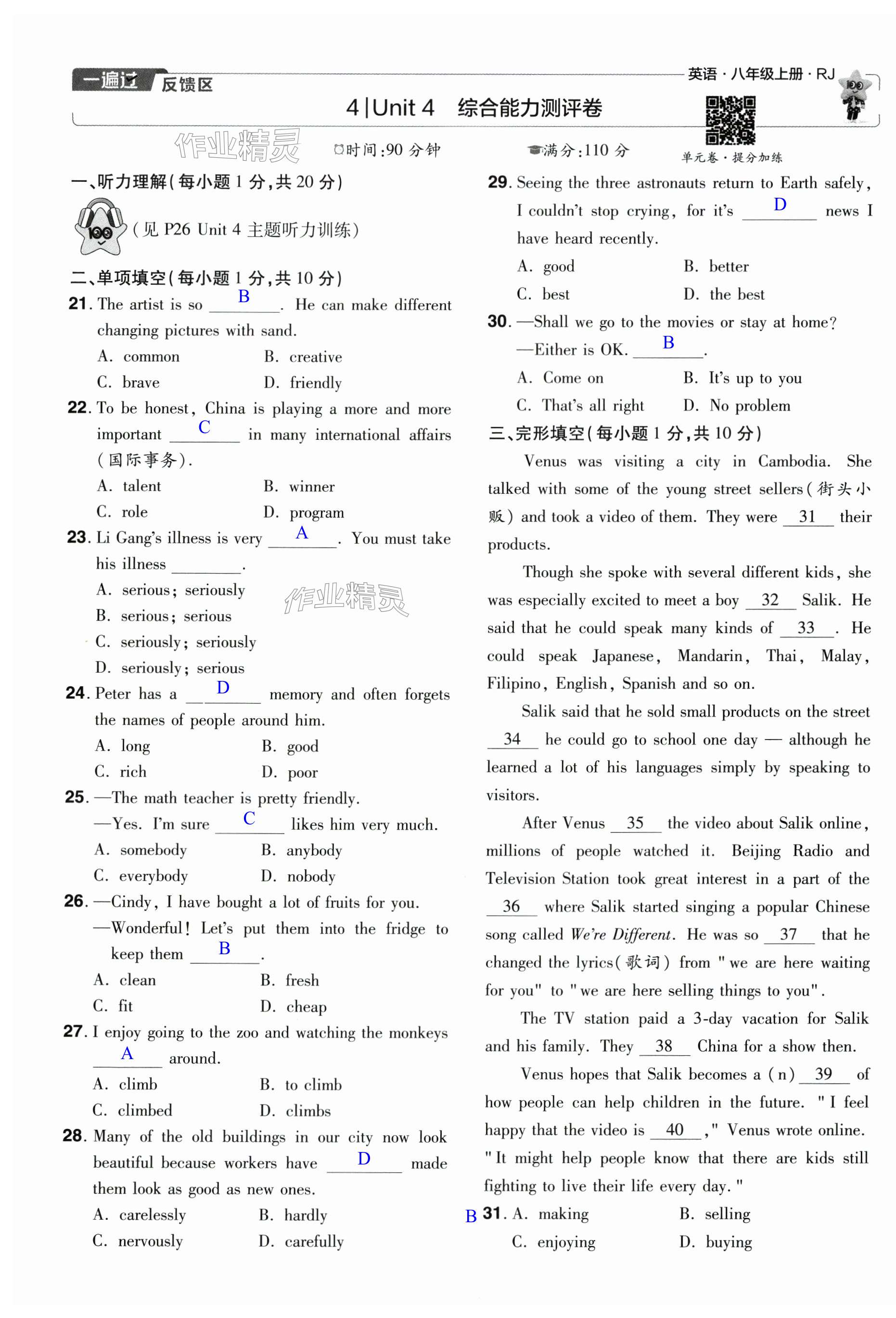 注:目前有些书本章节名称可能整理的还不是很完善,但都是按照顺序排列的,请同学们按照顺序仔细查找。练习册 2024年一遍过八年级英语上册人教版 答案主要是用来给同学们做完题方便对答案用的,请勿直接抄袭。