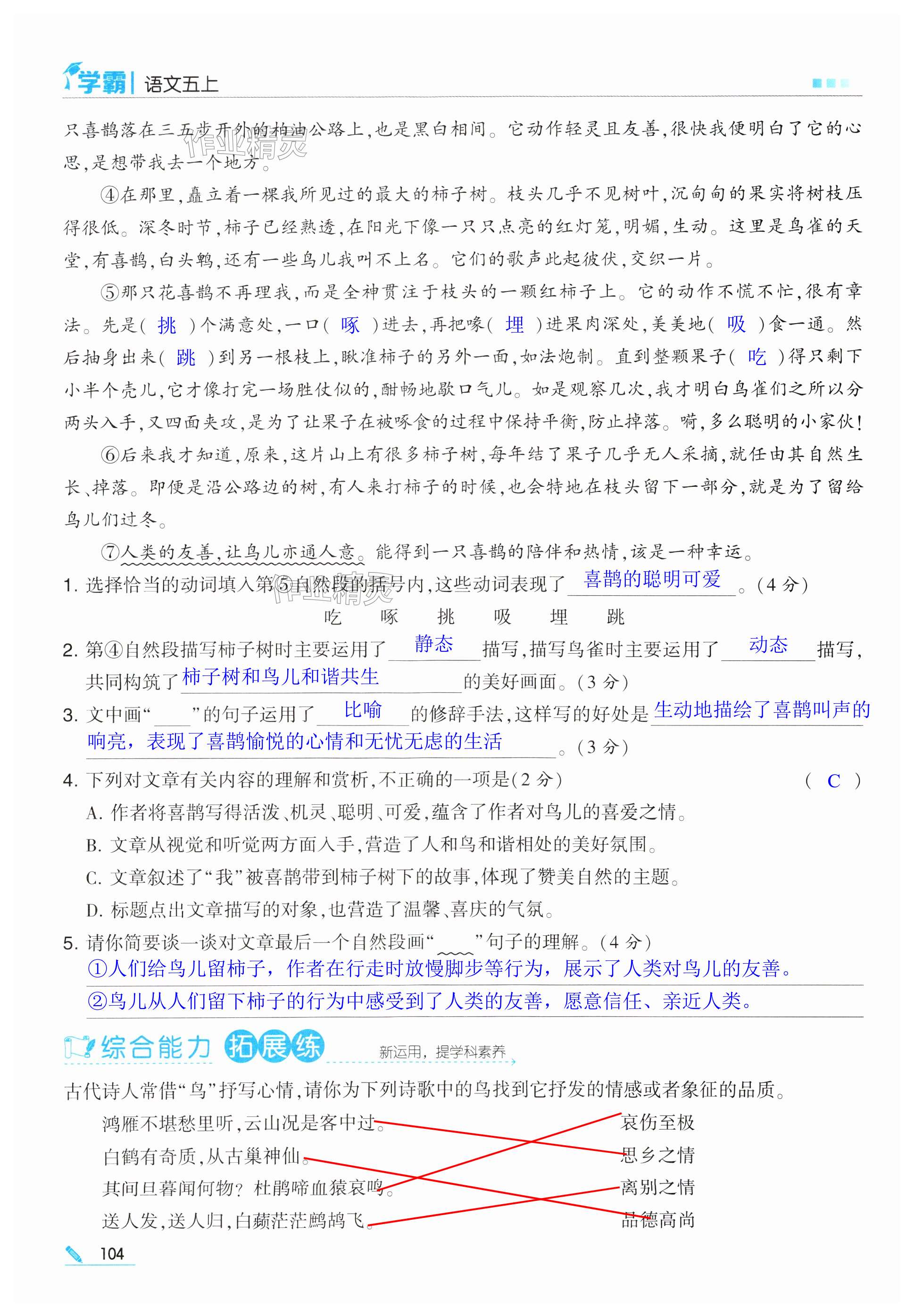 注:目前有些书本章节名称可能整理的还不是很完善,但都是按照顺序排列的,请同学们按照顺序仔细查找。练习册 2024年学霸甘肃少年儿童出版社五年级语文上册人教版 答案主要是用来给同学们做完题方便对答案用的,请勿直接抄袭。