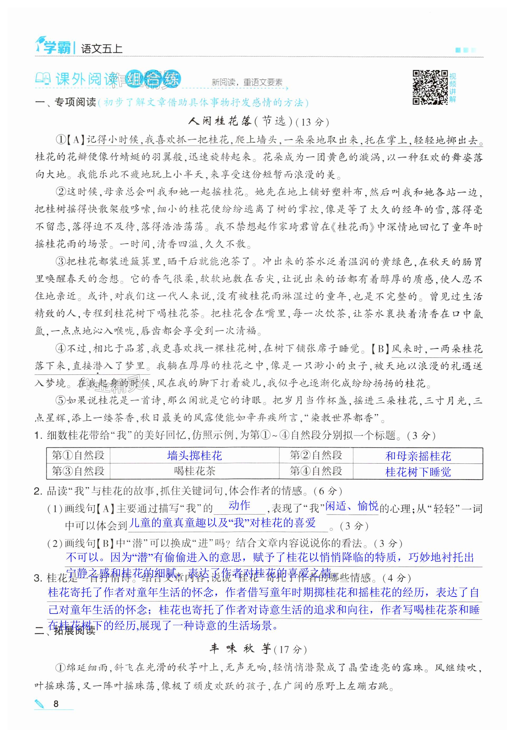 注:目前有些书本章节名称可能整理的还不是很完善,但都是按照顺序排列的,请同学们按照顺序仔细查找。练习册 2024年学霸甘肃少年儿童出版社五年级语文上册人教版 答案主要是用来给同学们做完题方便对答案用的,请勿直接抄袭。
