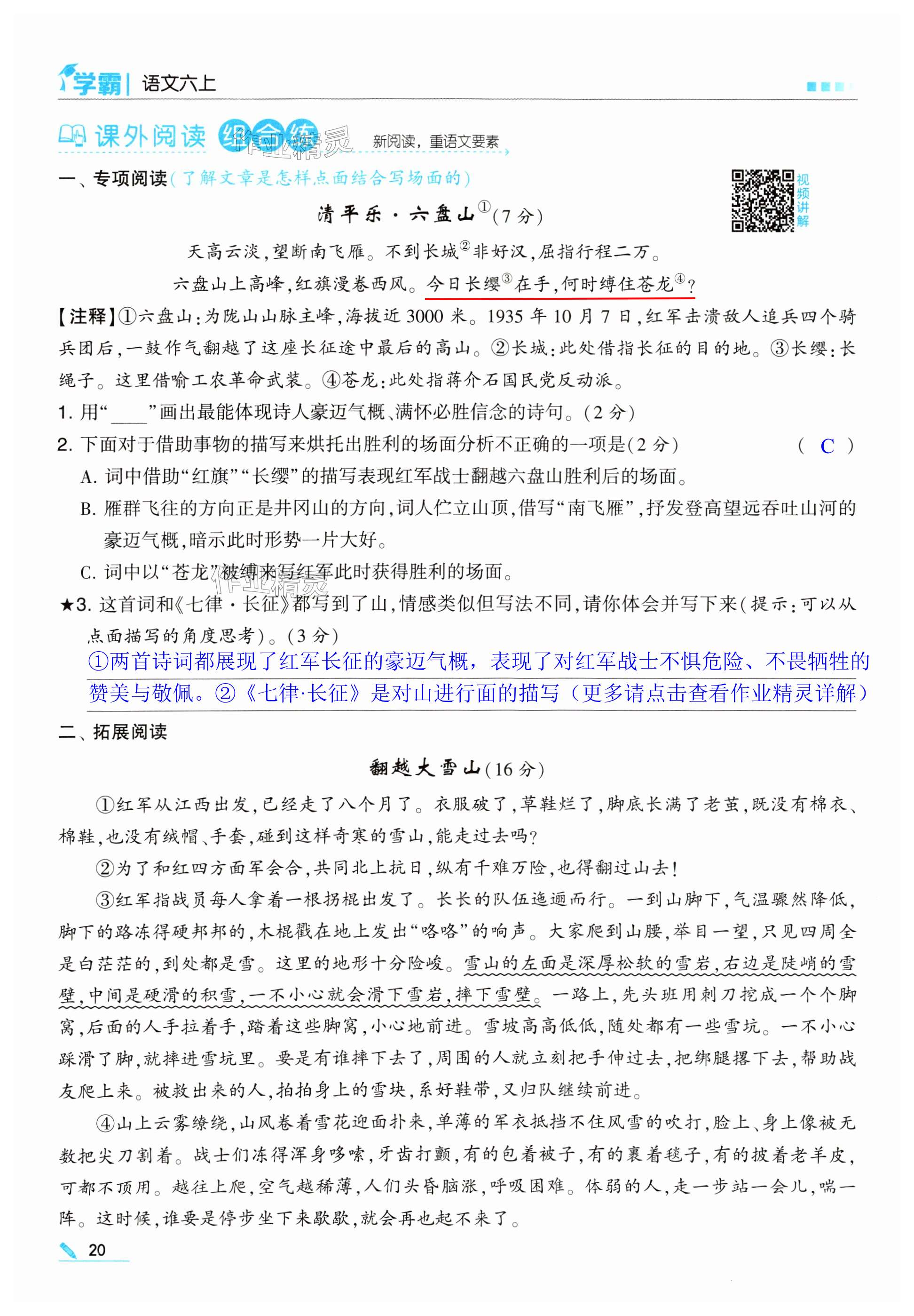 《2024年学霸甘肃少年儿童出版社六年级语文上册人教版》