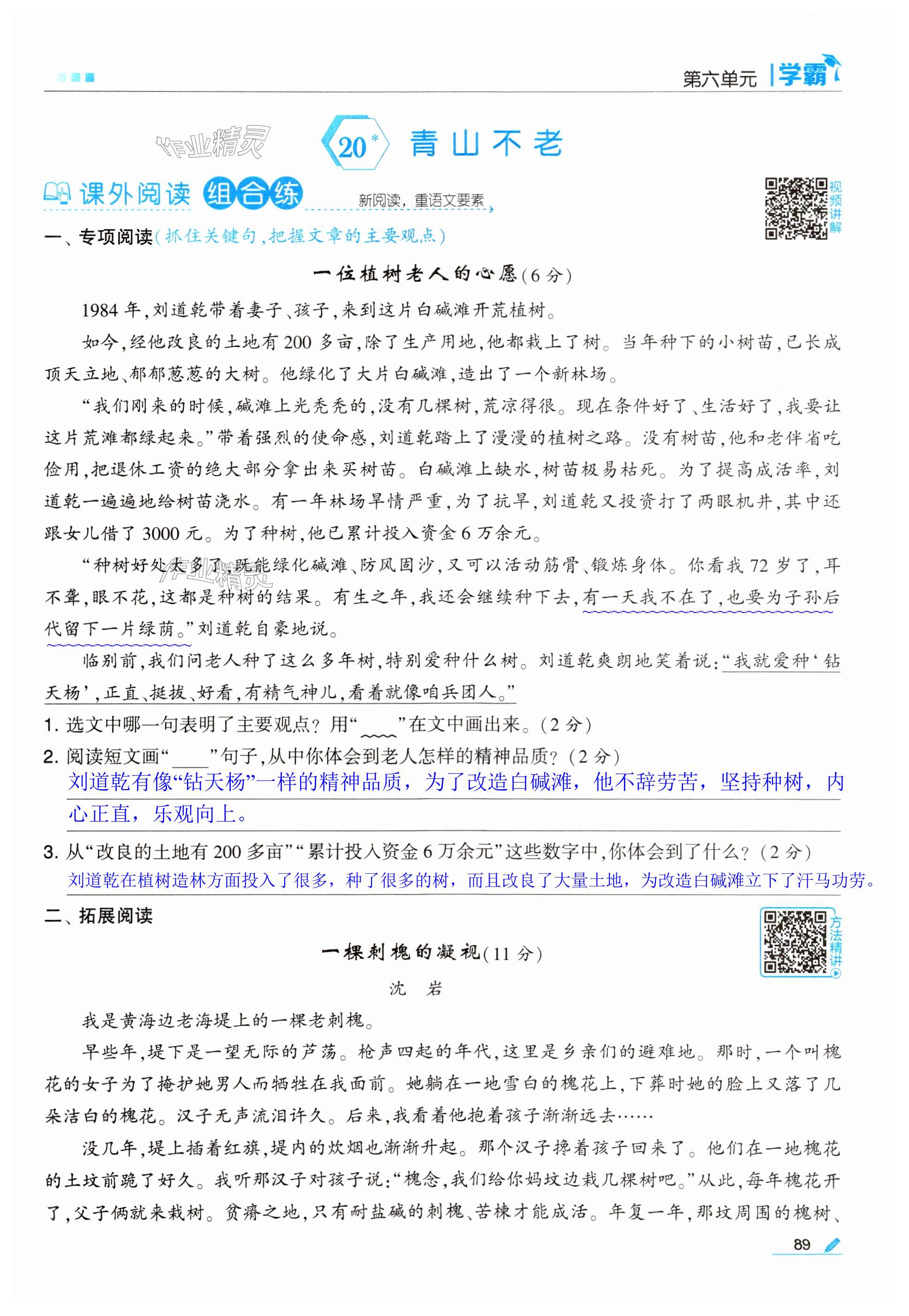 《2024年学霸甘肃少年儿童出版社六年级语文上册人教版》