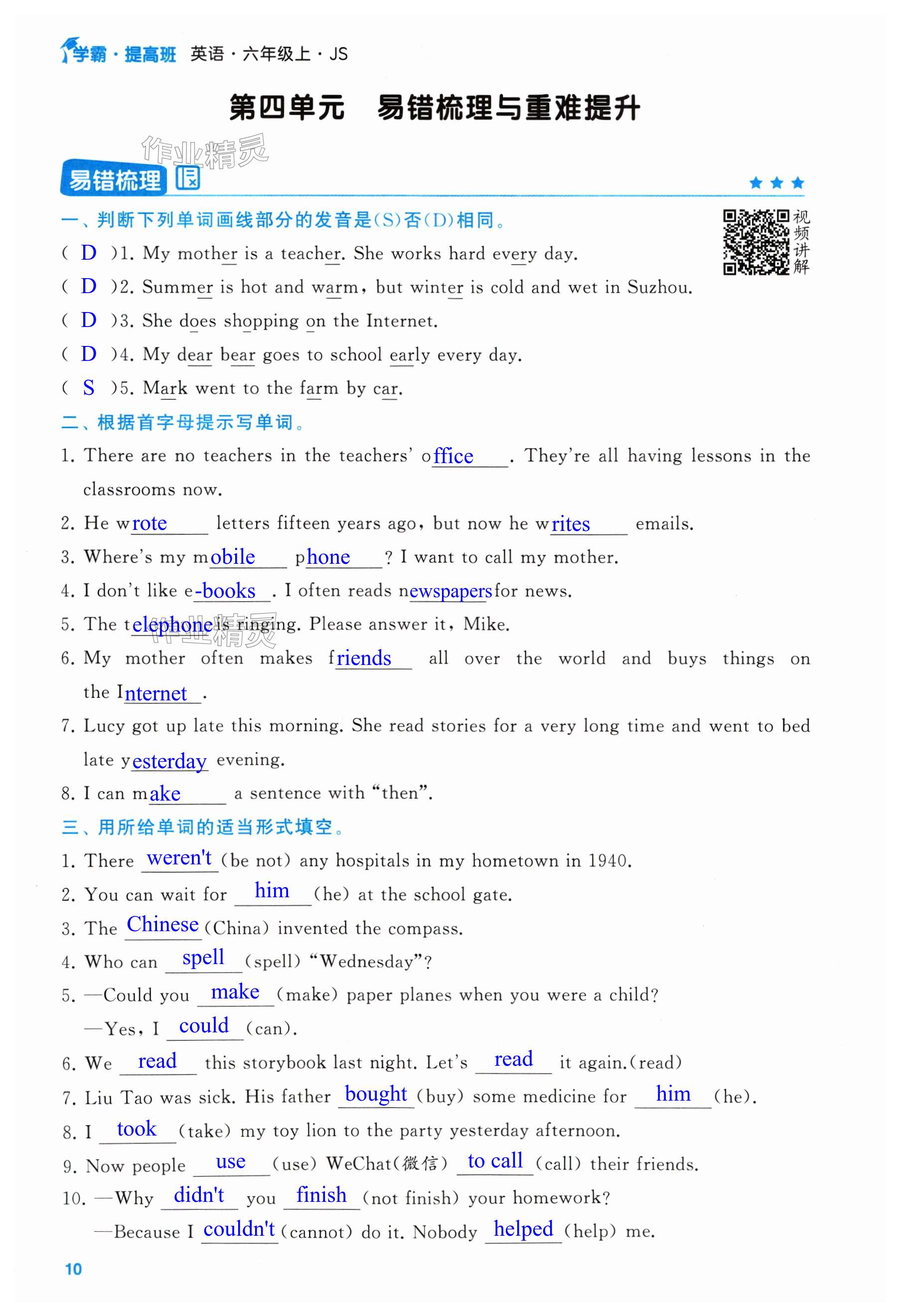 注:目前有些书本章节名称可能整理的还不是很完善,但都是按照顺序排列的,请同学们按照顺序仔细查找。练习册 2024年经纶学典提高班六年级英语上册译林版 答案主要是用来给同学们做完题方便对答案用的,请勿直接抄袭。