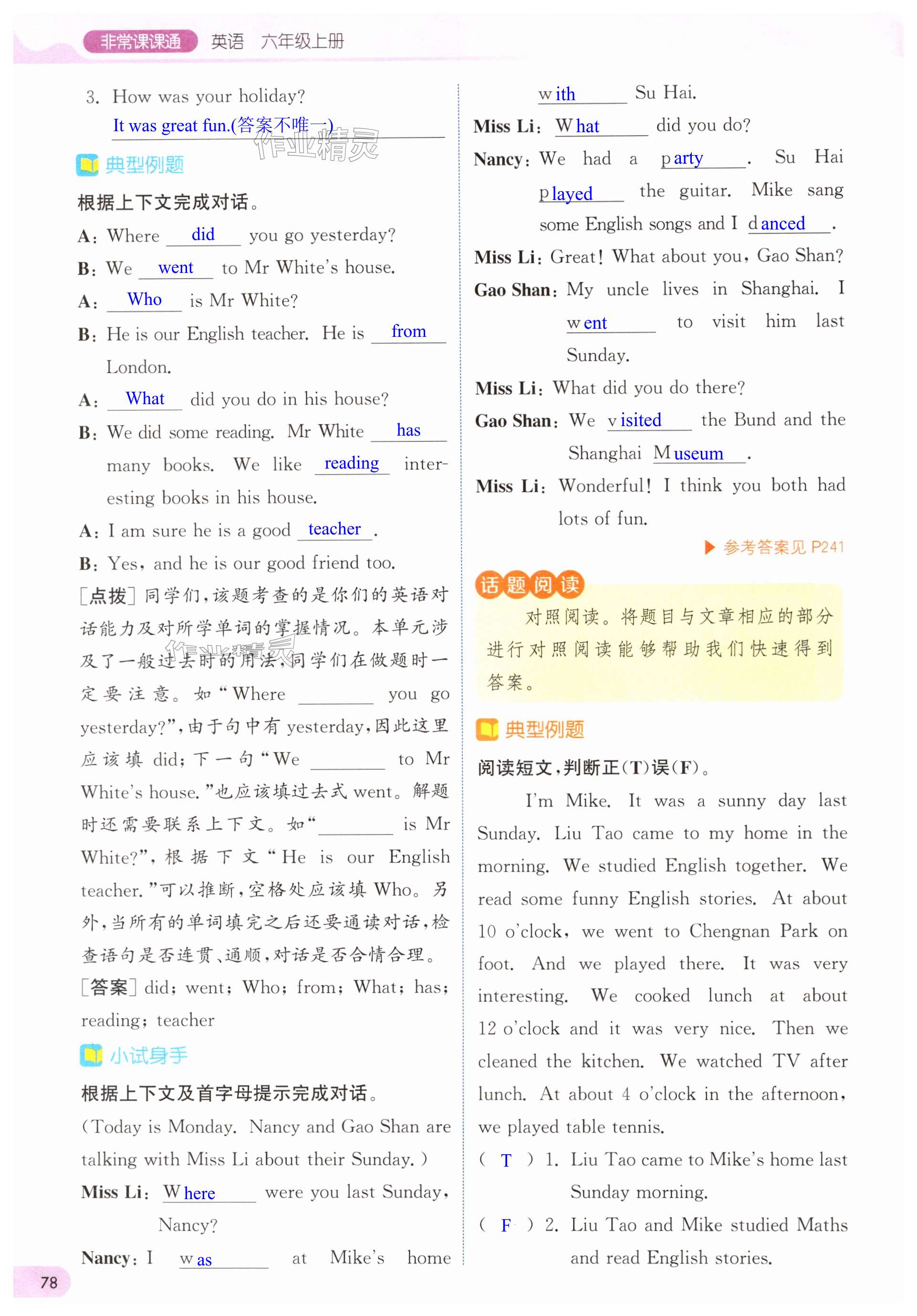 注:目前有些书本章节名称可能整理的还不是很完善,但都是按照顺序排列的,请同学们按照顺序仔细查找。练习册 2024年通城学典非常课课通六年级英语上册译林版 答案主要是用来给同学们做完题方便对答案用的,请勿直接抄袭。