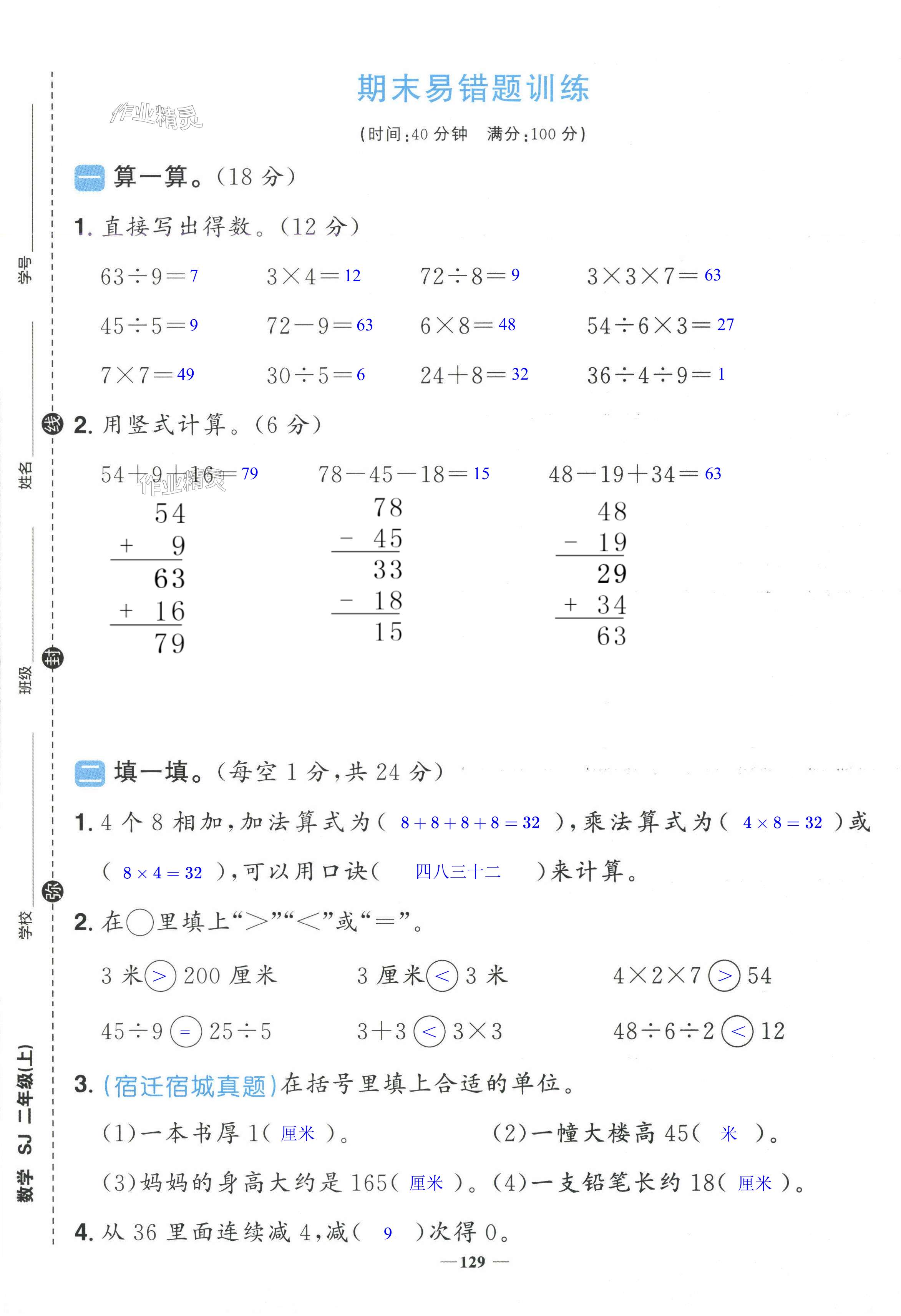 注:目前有些书本章节名称可能整理的还不是很完善,但都是按照顺序排列的,请同学们按照顺序仔细查找。练习册 2024年阳光同学课时优化作业二年级数学上册苏教版 答案主要是用来给同学们做完题方便对答案用的,请勿直接抄袭。