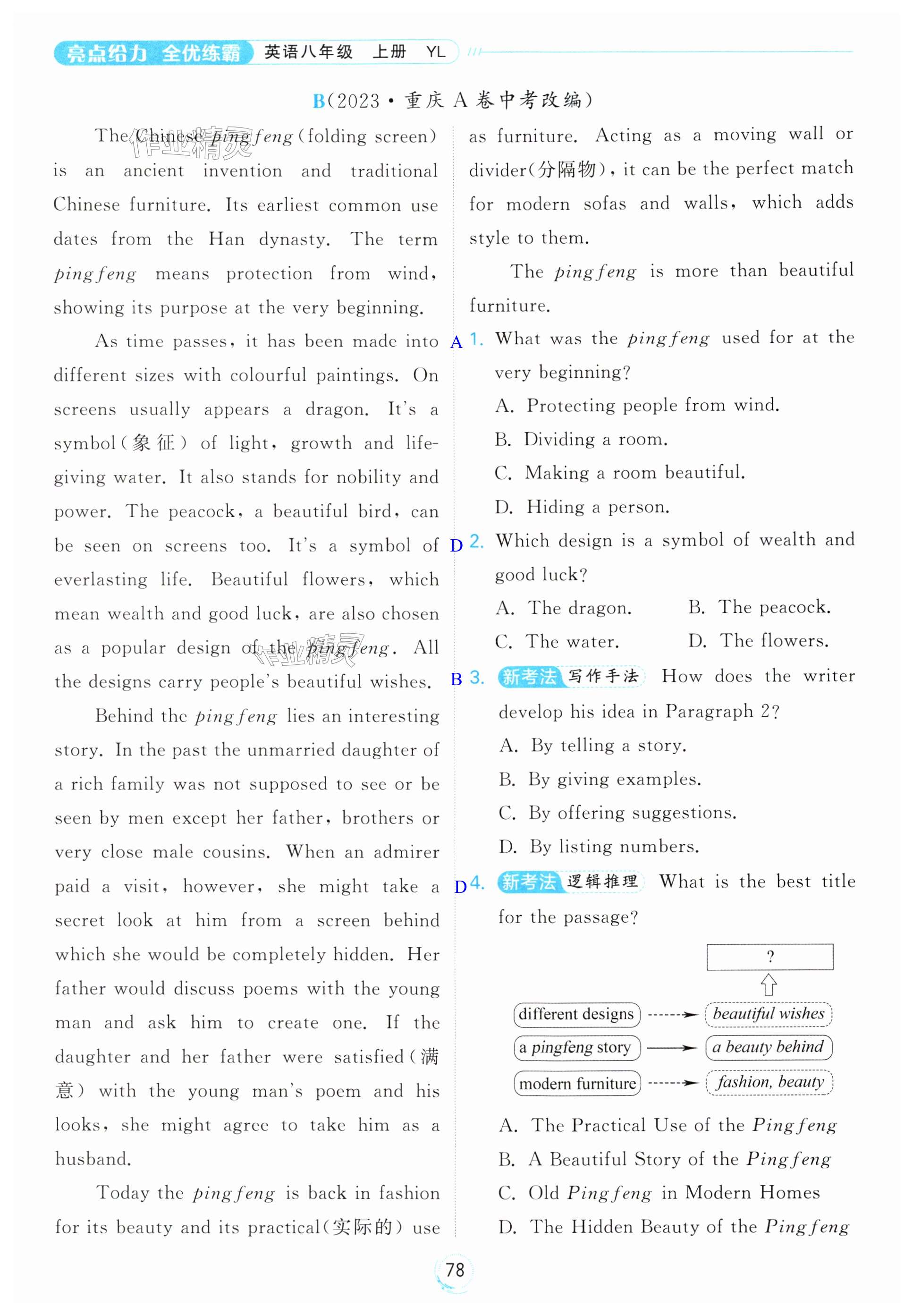 注:目前有些书本章节名称可能整理的还不是很完善,但都是按照顺序排列的,请同学们按照顺序仔细查找。练习册 2024年亮点给力全优练霸八年级英语上册译林版 答案主要是用来给同学们做完题方便对答案用的,请勿直接抄袭。