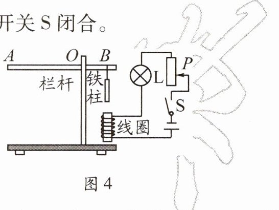 极。(2)若电源电压下降,栏杆不能抬起。除更换电池外,还有一种能使栏杆正常抬起的方法:将滑动变阻器接入电路的阻值
