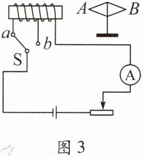 3. 如图3所示的电路,当将开关S拨到“a”时,电磁铁的左端为