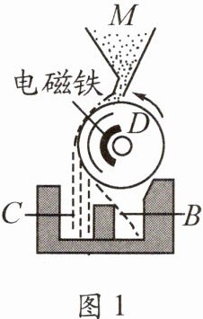 1. 如图1所示是电磁选矿机的示意图,其中M为矿石,D为电磁铁,落入B中的是