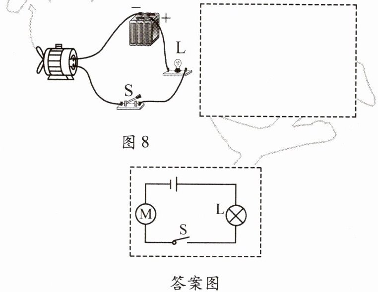 l6.请根据如图8所示的实物电路,在右边 的虚线方框内画出对应的电路图