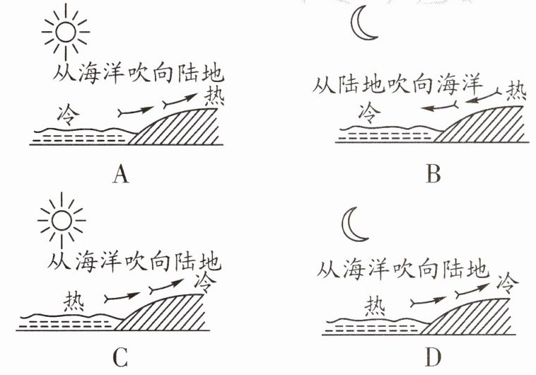 8.学习了比热容的知识后,某物理课外兴趣小组绘制了下列所示的海陆风成因及流动情况示意图,其中正确的是 (