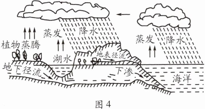 3. 图4所示是地球上的水循环示意图,请用物态变化知识简单描述水循环的过程。海洋中的水在阳光的照射下,温度升高