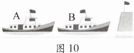 4.如图10所示,由于风的缘故,河岸上的旗帜向右飘,而两艘船上的旗帜分别向右飘和向左飘。关于两艘船的运动状态,下列判断正确的是 (