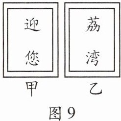 1.某商场外墙悬挂着一条巨型条幅,从上往下写有“广州荔湾欢迎您”,在对面的观光电梯中,小昕对着条幅先后拍了两张照片,如图9所示。下列说法正确的是 (