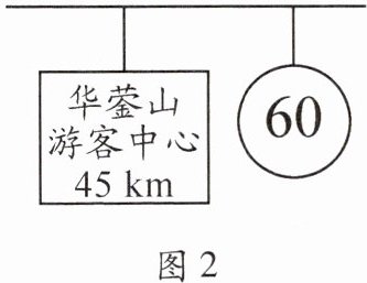 (选填“地面”或“车”)为参照物的。当车辆行驶至某一路口时,小兰同学看到如图2所示的标志牌,则车辆到达华蓥山游客中心至少还需要 0.75
