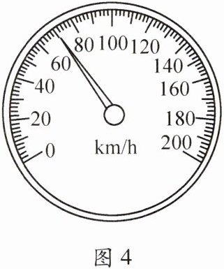 11.图4所示是汽车上的速度计,一辆汽车以若此速度从满城经安大线驶向雄安,满城距雄安70 km,则下列说法正确的是 (
