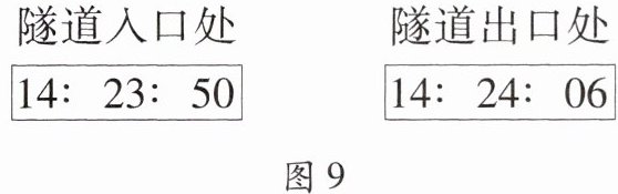 3.一列长为200 m的动车以恒定的速度穿过一座车长800 m的隧道,坐在车尾的小明分别记录了他在隧道入口处和出口处的时间,如图9所示。动车行驶的速度是