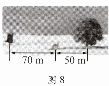 2.如图8所示,野兔在草地上以20 m/s的速度向前方50 m处的树洞沿直线奔逃,秃鹰在野兔正后方70 m处以40 m/s的速度贴着地面飞行追击野兔。野兔跑到洞口需要的时间是