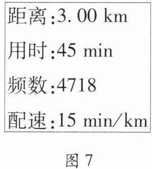 1.比较物体运动的快慢有两种方法:①相同时间比路程;②相同路程比时间。小明在校园里散步时看到自己运动手表的部分信息如图7所示,由“配速”信息可知,这是用第