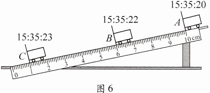 7. (2023·眉山)如图6所示,小明在“测平均速度”实验中,让小车从斜面上的A点处由静止开始下滑,经过B点到达C点,图中已标出小车经过A、B、C三点对应的时刻。下列说法正确的是( )