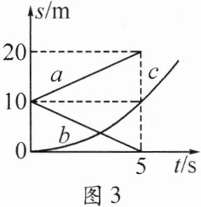 5.(双选)a、b、c三个物体在同一条直线上运动,三个物体运动的s-t图象如图3所示,图象c是一条过坐标原点的曲线。下列说法正确的是(