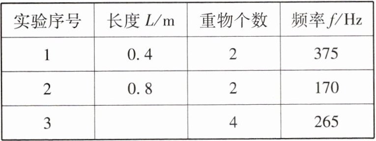 所示的实验装置进行实验。已知一块厚木板上有A、B两个楔支撑着琴,其中A楔固定,B楔可沿木板移动以改变琴弦振动部分的长度。将钢制琴弦的一端固定在木板O点,在其另一端通过定滑轮悬挂不同个数的相同重物,重物个数越多,琴弦绷得越紧。轻轻拨动A、B间的琴弦,用仪器测出发声的频率。