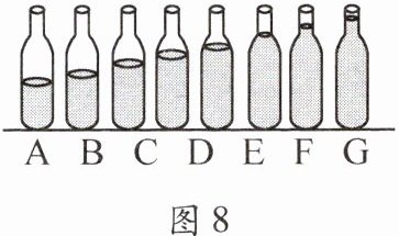 1. (2023·韩城)小强找来8个相同的啤酒瓶,并装入不同高度的水,如图