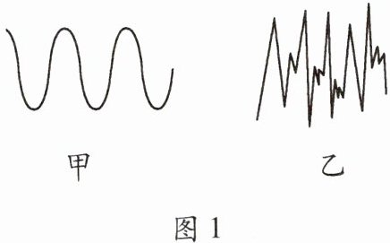 2. 图1所示是示波器上的波形图,甲图是音叉发声的波形图,乙图是电锯切割木头时发声的波形图。从图中可以看出,