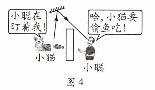 3. 如图4所示,关于小猫和小聪间的两条光线的夹角是60°,那么小聪观察小猫光路的入射角大小是