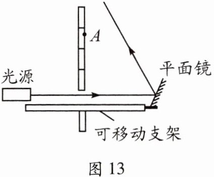 3. 如图13所示,可移动支架的一端装有固定的小平面镜,侦察员想利用光源发出水平方向的光,通过平面镜的反射,照射到墙壁上的目标A。下列操作可行的是 (