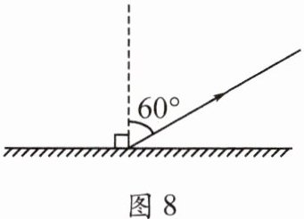 平面镜与入射光线的夹角为$90° - 60° = 30°$,故平面镜与水平方向夹角为$30°$或$150°$(两种情况,镜面向上或向下),以下为其中一种情况答案图: