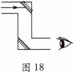 11. 潜水艇是重要的军事装备。如图18所示,潜水艇里的观察员用潜望镜观察水面上的情况,进入观察员眼睛的光线与平面镜的夹角是 (