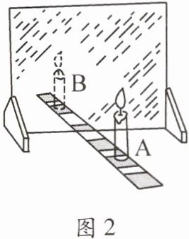 3. 如图2所示,在“探究平面镜成像”实验中,小芳所在小组使用的器材有2根相同的蜡烛、玻璃板、刻度尺等。