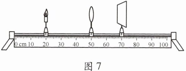 6. (2022·淄博)在“探究凸透镜成像的规律”实验中,凸透镜的焦距f=12cm,蜡烛、凸透镜、光屏在光具座上的位置如图7所示,此时烛焰在光屏上成清晰的像。下列判断正确的是 (