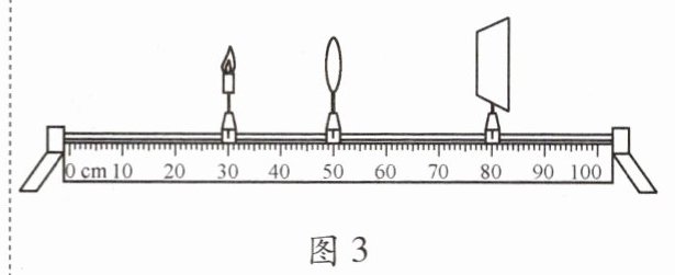 3. (2023·娄底)在“探究凸透镜成像规律”实验中,当蜡烛、凸透镜、光屏位于如图3所示的位置时,光屏上呈现烛焰清晰的像,该像是倒立、