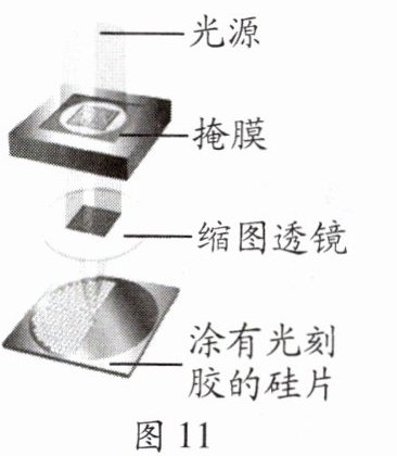 12. 2023年2月哈尔滨工业大学宣布突破EUV光刻机关键技术。光刻技术是利用“缩图透镜”将绘在掩膜上的电路图通过光源投射到涂有光刻胶的硅片上,成像越小,芯片制程越小,其工作原理如图11所示。下列说法正确的是 (