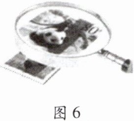 7. (2023·绥化)如图6所示,小明通过焦距为15cm的凸透镜观察到邮票正立、放大的像。下列说法正确的是 (