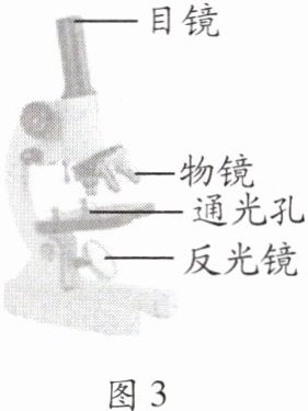 9.图3所示是显微镜的结构。下列说法不正确的是 (