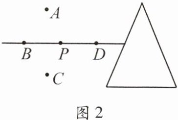 2. 如图2所示的三角形是一个三棱镜的纵截面。在三棱镜的左侧有一个物体P,若人在三棱镜的右侧观察,则所看到的物体P的像大致在(
