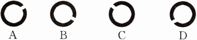 4. 检查视力时,要求被测者距离视力表5m,由于室内空间不足,医生找来一块平面镜挂在墙壁上,让小明观察平面镜中视力表的像(视力表被挂在小明头部的后上方)。图4所示是“C”形视力表上面医生所指的原图,则小明看到的图像形状应该是下列图中的(