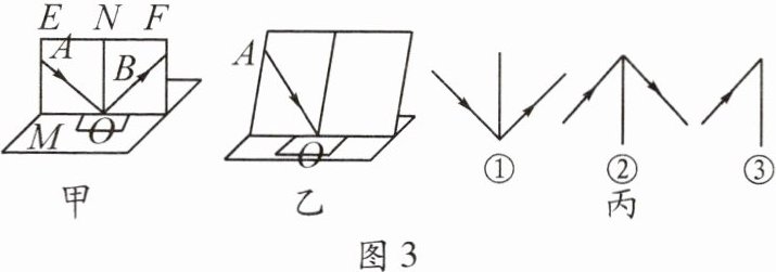 (5)在实验过程中,若将硬纸板倾斜,如图3乙所示,让入射光线仍贴着纸板沿AO方向射向镜面,此时反射光线、入射光线与法线