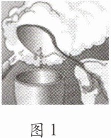 态的水蒸气;将长柄勺子靠近壶嘴,所示,水蒸气又变成液