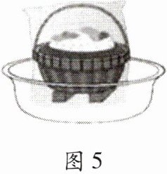 1. 盛一盆水,在盆里放两块高出水面的砖头,在砖头上搁一只比盆小一点的篮子。篮子里有剩饭剩菜,再把一个纱布袋罩在篮子上,并使袋口的边缘浸在水里,如图所示,这就做成了一个简易冰箱。把它放在通风的地方,即使经过一天的时间,里面的饭菜也不会变质。下列关于简易冰箱的讨论不正确的是 (