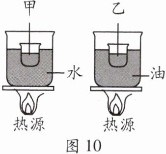 3. 如图所示,某兴趣小组用相同的小烧杯甲、乙盛等量的水,以相同的酒精灯同时加热。在标准大气压下,甲杯为隔水加热,乙杯为隔油加热,加热足够长的时间后,测得烧杯外物质的温度分别为水温100 ℃、油温300 ℃,则甲、乙两杯中能沸腾的水是