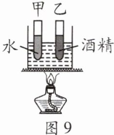 2. 如图所示,大容器中装有水,甲、乙两试管中分别装有水和酒精,持续加热,则甲、乙两试管中的液体 (