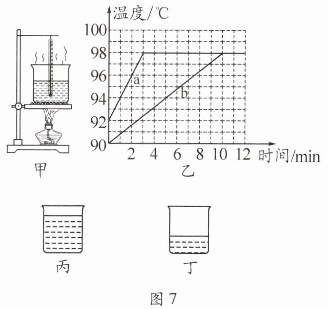 (选填“丙”或“丁”)杯水;(4)对实验进行评估可知,b实验小组将水加热至沸腾的时间过长,给他们的合理化建议是:
