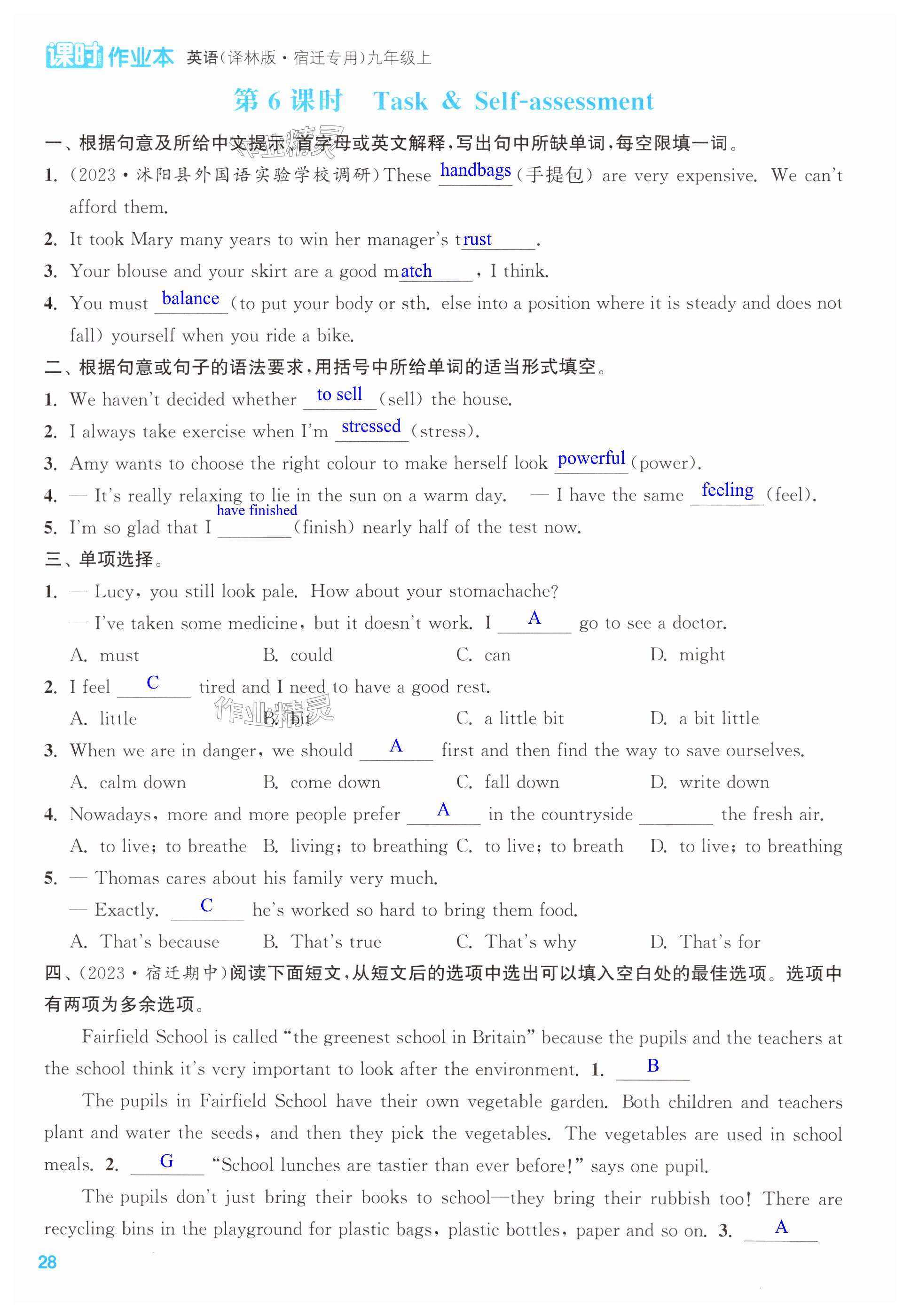 注:目前有些书本章节名称可能整理的还不是很完善,但都是按照顺序排列的,请同学们按照顺序仔细查找。练习册 2024年通城学典课时作业本九年级英语上册译林版宿迁专版 答案主要是用来给同学们做完题方便对答案用的,请勿直接抄袭。