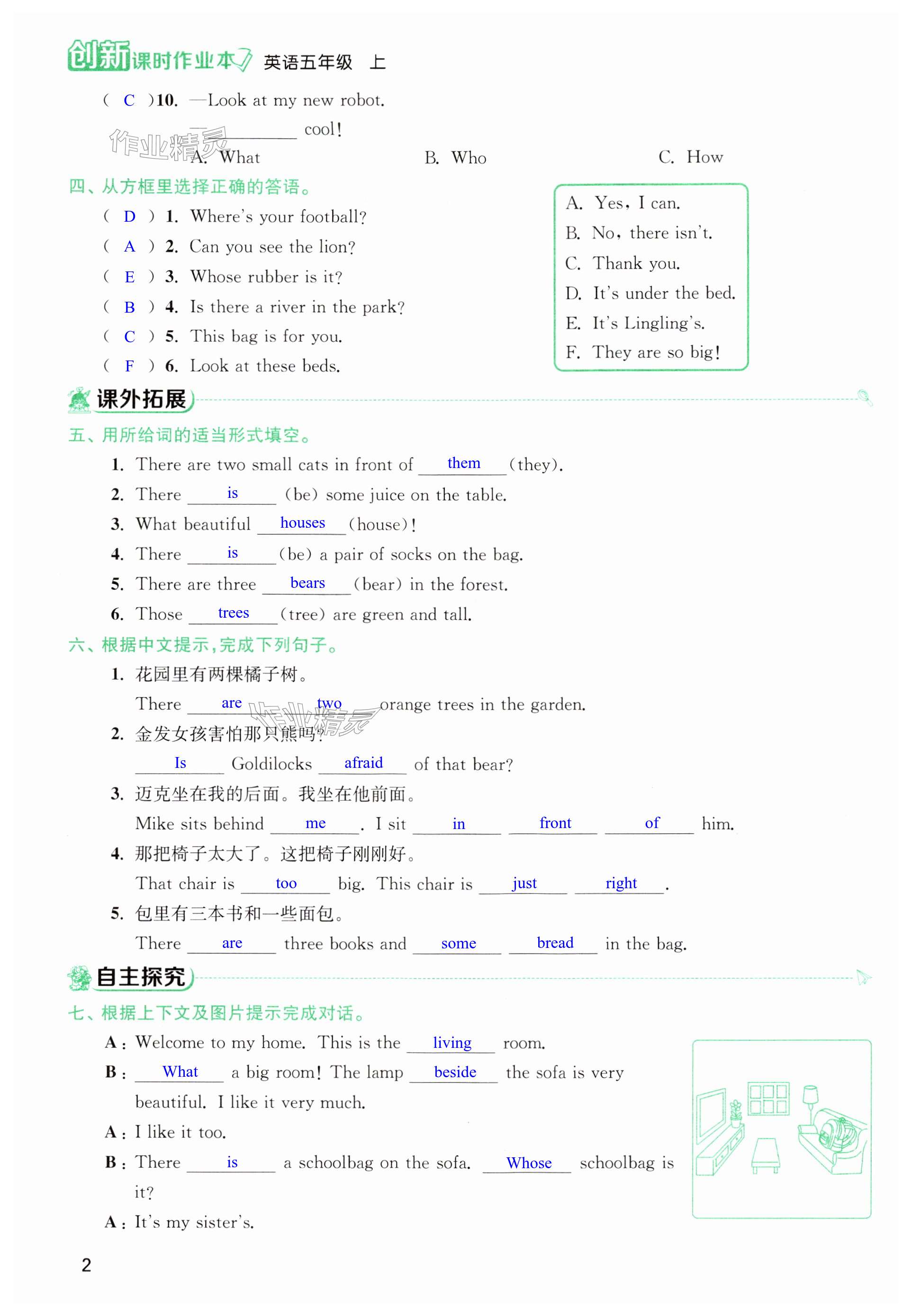 注:目前有些书本章节名称可能整理的还不是很完善,但都是按照顺序排列的,请同学们按照顺序仔细查找。练习册 2024年创新课时作业本五年级英语上册译林版 答案主要是用来给同学们做完题方便对答案用的,请勿直接抄袭。