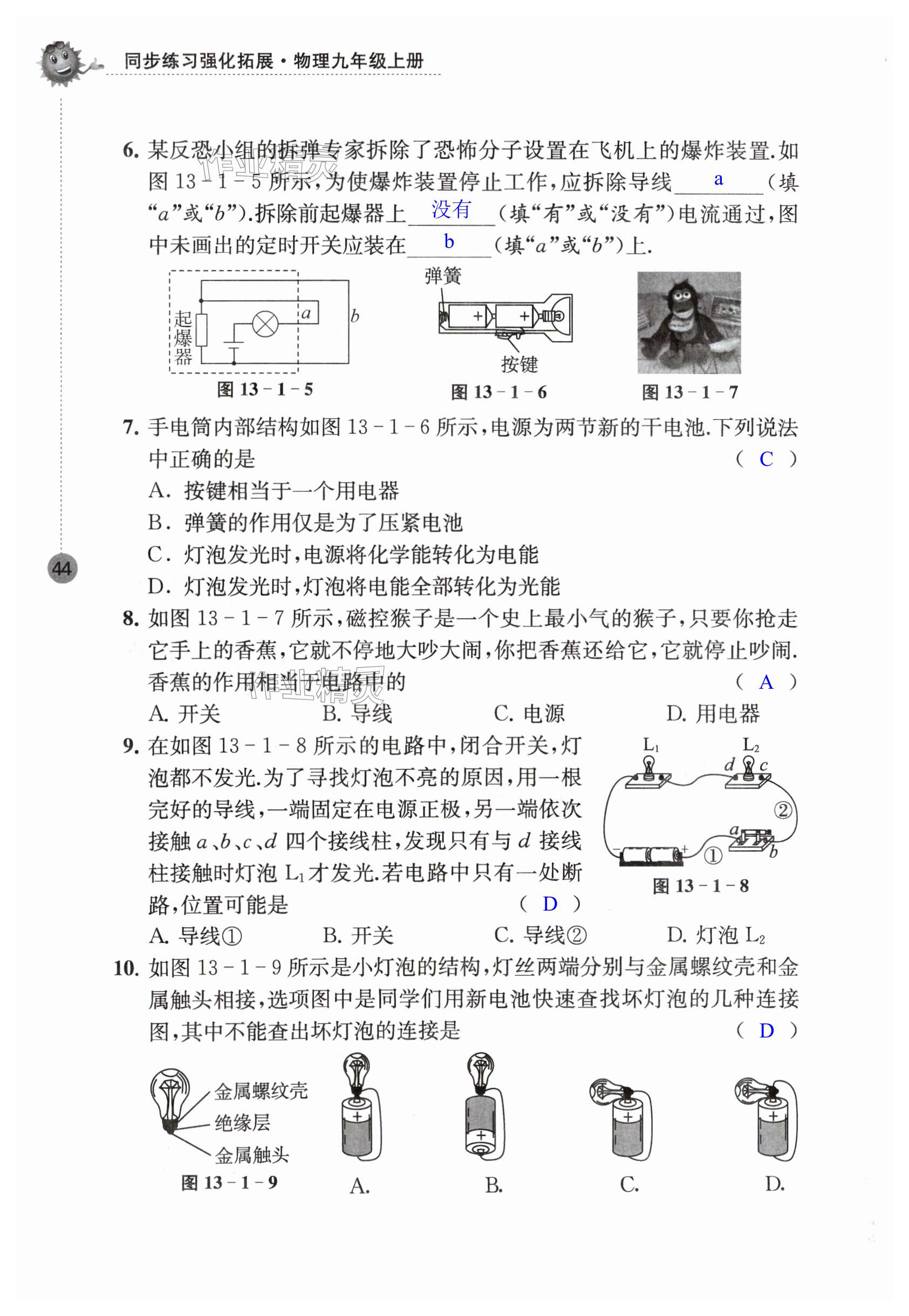 注:目前有些书本章节名称可能整理的还不是很完善,但都是按照顺序排列的,请同学们按照顺序仔细查找。练习册 2024年同步练习强化拓展九年级物理上册苏科版 答案主要是用来给同学们做完题方便对答案用的,请勿直接抄袭。