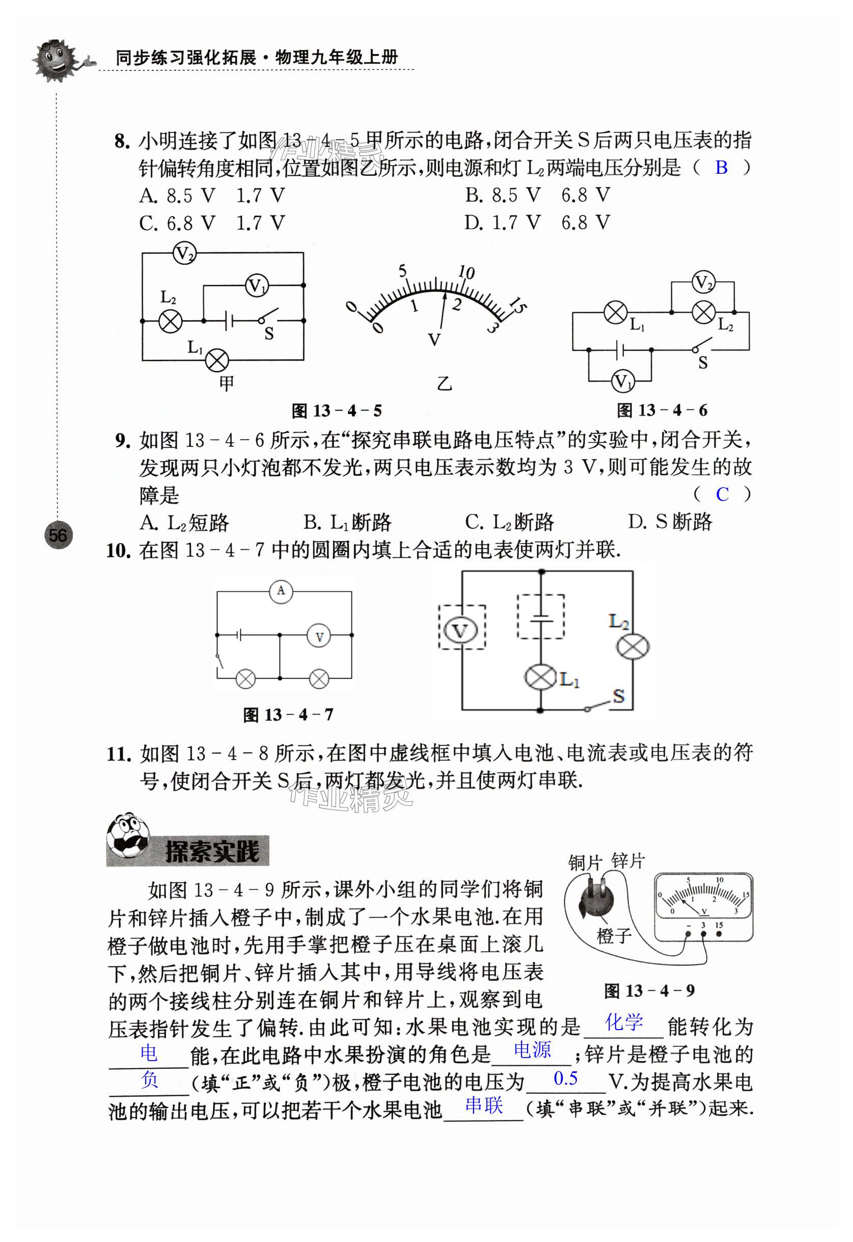注:目前有些书本章节名称可能整理的还不是很完善,但都是按照顺序排列的,请同学们按照顺序仔细查找。练习册 2024年同步练习强化拓展九年级物理上册苏科版 答案主要是用来给同学们做完题方便对答案用的,请勿直接抄袭。