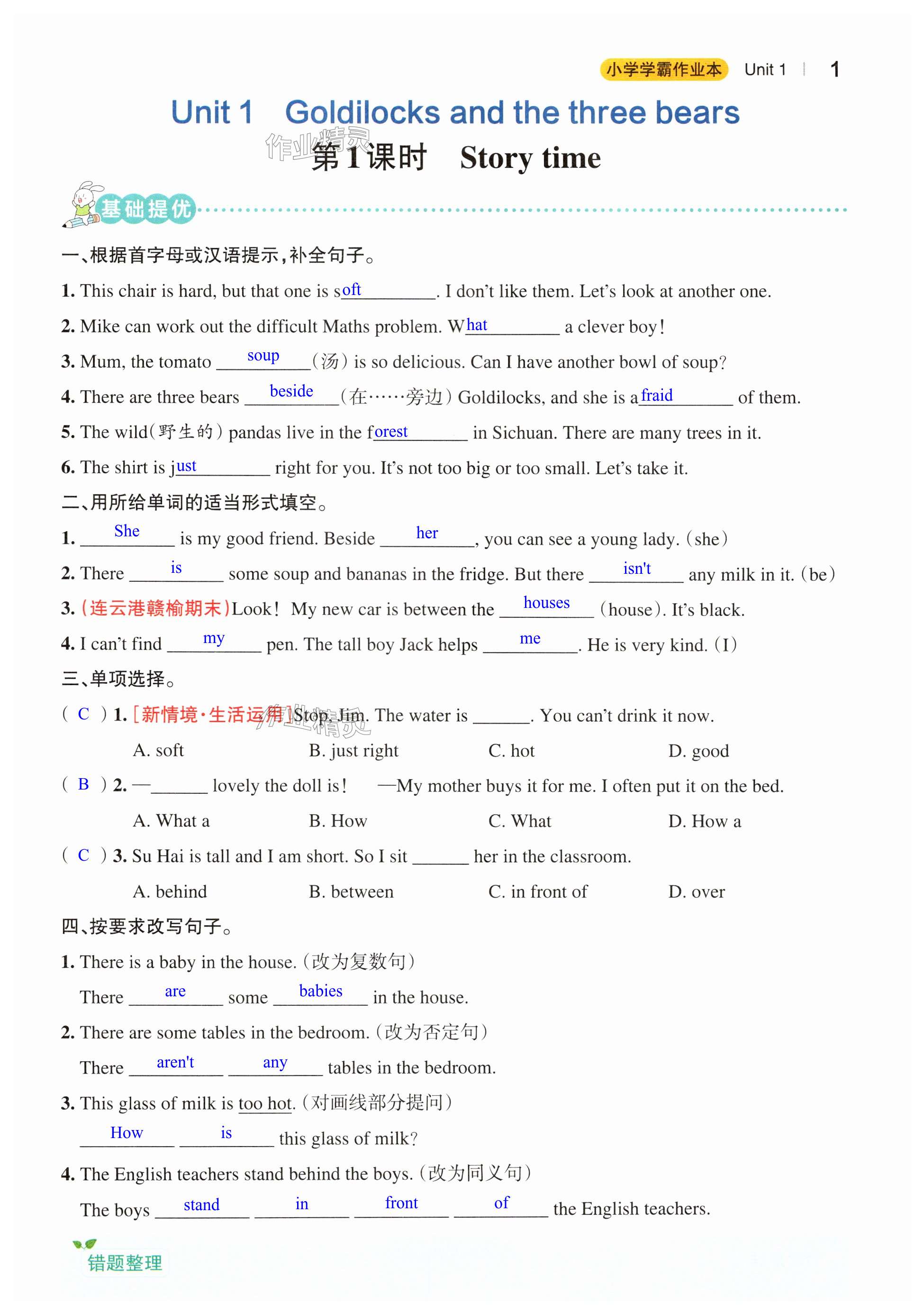 注:目前有些书本章节名称可能整理的还不是很完善,但都是按照顺序排列的,请同学们按照顺序仔细查找。练习册 2024年小学学霸作业本五年级英语上册译林版江苏专版 答案主要是用来给同学们做完题方便对答案用的,请勿直接抄袭。